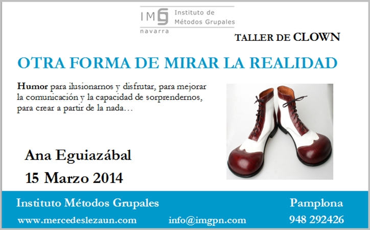 Humor para ilusionarnos y disfrutar, para mejorar la comunicación y la capacidad de sorprendernos, para crear a partir de la nada... Tendrá lugar el 15 de marzo de 2014 y será impartido por Ana Eguiazábal. Más información en el 948292426 o en info@imgpn.com