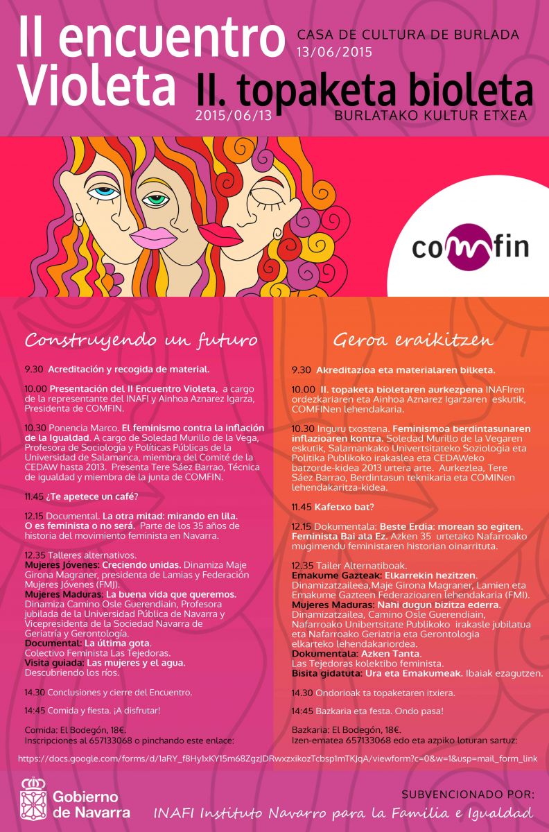 COMFIN organiza este encuentro que tendrá lugar el próximo 13 de junio de 9:30 a 14:45 en la Casa de Cultura de Burlada. Posteriormente finalizará la jornada con una comida. Accede a la noticia para consultar el programa.