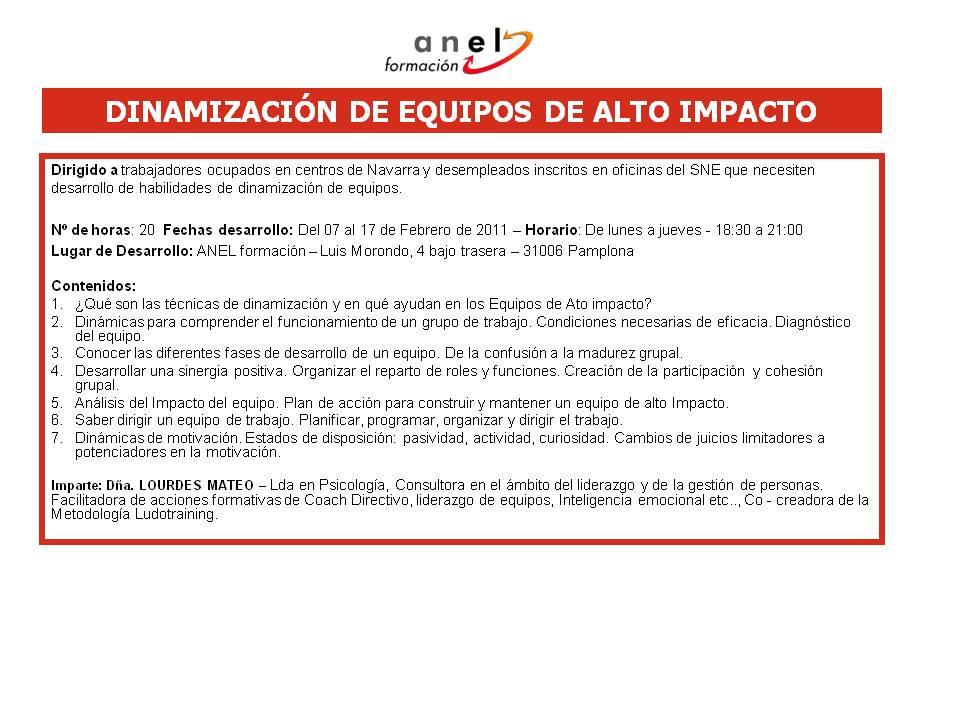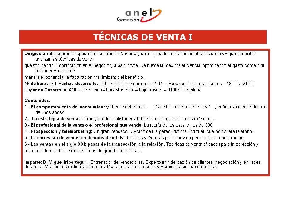 En febrero Dinamización de equipos de alto impacto y Técnicas de venta 1 impartido por ANEL