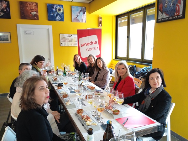 La cata de cerveza organizada por Amedna para favorecer los contactos y relaciones entre asociadas y otras mujeres profesionales ha resultado un éxito. En un ambiente distendido, propiciado por el Beer Kupela, el local donde ha tenido lugar, las participantes han tenido ocasión de dar a conocer su actividad empresarial, especialmente las asociadas recientemente incorporadas a la Asociación. En cuanto a la cata, se han mostrado los elementos que componen la cerveza, las variedades y sus diferencias y las nuevas tendencias. 5 han sido las cervezas catadas: lager, blonde ale, wildsour, ipa y lager negra.