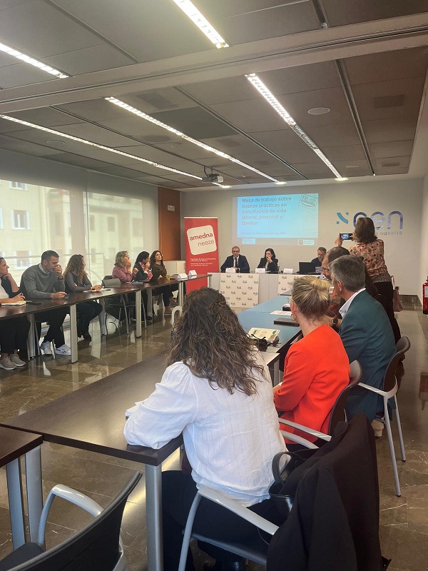 Este encuentro es una de las acciones que lleva a cabo anualmente AMEDNA junto al departamento de Departamento de Derechos Sociales, Economía Social y Empleo en el marco del proyecto del Sello Reconcilia. La mesa ha estado presidida por Iñaki Mendióroz, director general de Economía social y Trabajo, Cristina Sotro, presidenta de AMEDNA y Susana Labiano, su gerente quien ha expuesto el análisis de medidas de la red reconcilia y su incidencia atendiendo a los distintos tamaños y sectores y ha compartido las medidas de conciliación más innovadoras implantadas en las empresas. La exposición de buenas prácticas ha sido realizada por las empresas ANTOX y AGENOR MANTENIMIENTO quienes han compartido las "prácticas restaurativas" por parte de ANTOX, y la implantación del programa Factorial por parte de AGENOR.