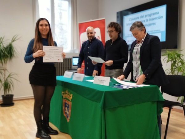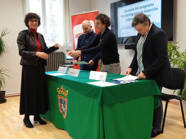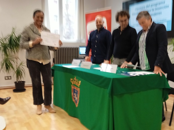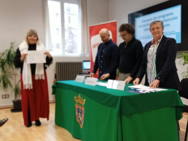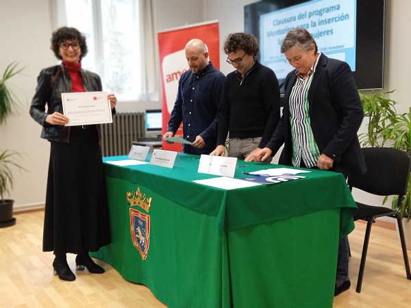 El viernes, 19 de diciembre mujeres usuarias de los Programas EISOL y SMIL del Área de Acción Social del Ayuntamiento de Pamplona recibieron sus diplomas por la participación en el programa Mentoring para inserción laboral de mujeres. La entrega se ha realizado por el concejal de Acción Social, Txema Mauleón y la vicepresidenta de Amedna, Teresa Osés. Al acto de clausura han asistido también las asociadas que han participado en el programa como mentoras.
