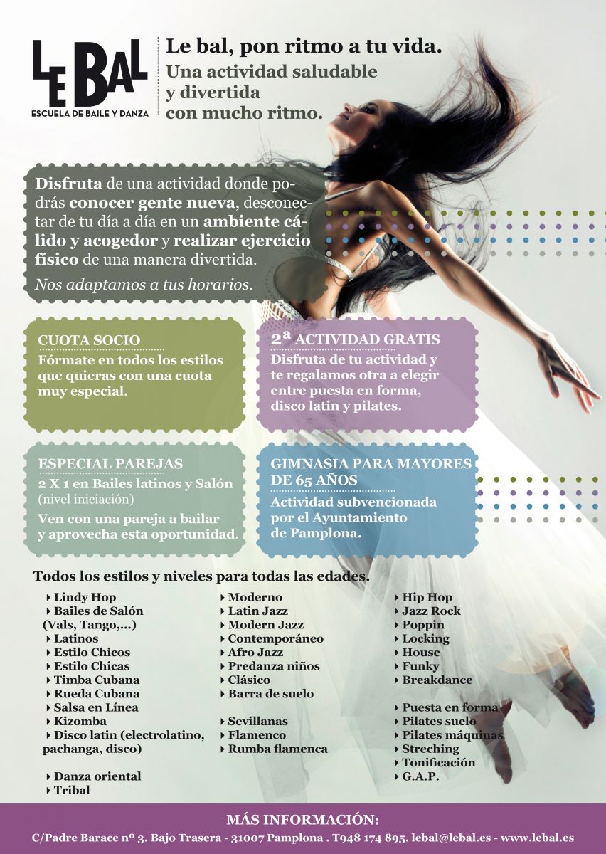 Este curso comenzamos de nuevo con muchas ganas de divertirnos y de hacer ejercicio con las actividades que nos propone Le Bal. Como asociada de Amedna, disfruta de una actividad saludable y divertida con mucho ritmo gracias a las ventajas que te ofrecemos.