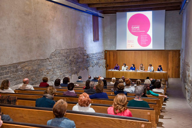 El Colegio de Arquitectos en Navarra organizó en el Palacio del Condestable de Pamplona, en el marco del Festival Miradas de Mujeres, esta mesa redonda bajo el título GAME: Género, arte, mujeres y economía. La sesión estuvo moderada por Maier Velez y planteada desde la necesidad de seguir avanzando en la igualdad entre hombres y mujeres y en este caso concreto entre hombres artistas y mujeres artistas.