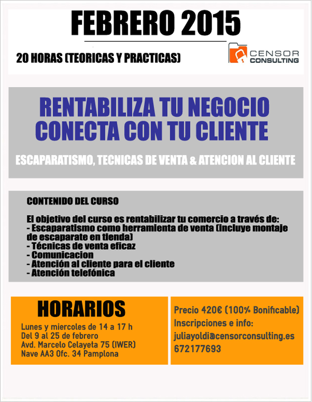 Se trata de un curso dirigido al comercio 100% bonificable; las fechas son orientativas, cuando el curso este completo tendrá una duración de tres semanas, dos días a la semana (en horario de mediodía) y es teórico practico: