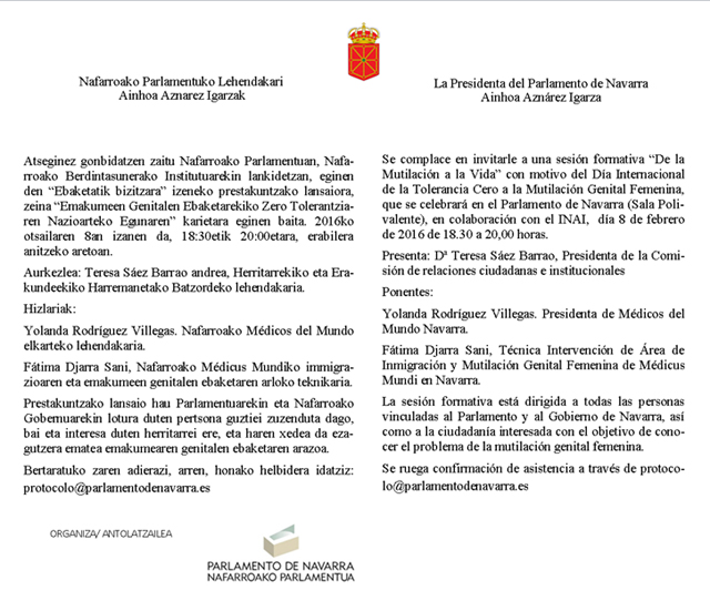 El Parlamento de Navarra, en colaboración con el INAI, ha organizado esta jornada que tendrá lugar el próximo lunes, 8 de febrero de 18:30 a 20:00. Las personas interesadas en asistir pueden inscribirse a través del correo electrónico protocolo@parlamentodenavarra.es