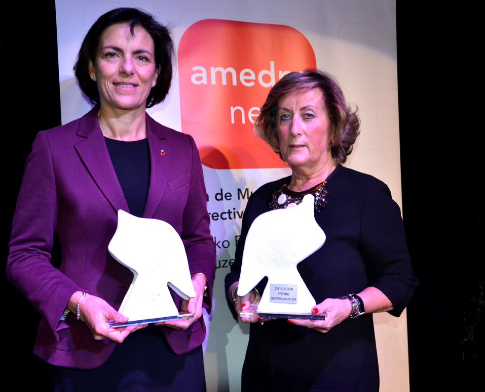 La Asociación de Mujeres Empresarias y Directivas de Navarra (AMEDNA/NEEZE), presidida por Mª Victoria Vidaurre, entregó el pasado miércoles los XIX Premios Empresaria y Directiva Navarra 2016. Los galardones organizados por AMEDNA/NEEZE anualmente, cuenta con la colaboración del Ayuntamiento de Pamplona, a través del Área de Participación Ciudadana, Igualdad y Empoderamiento Social, así como de Laboral Kutxa.