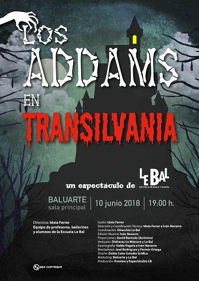 Este domingo 10 de junio, a las 19:00 horas, la Escuela de Baile y Danza Le Bal estrenará el espectáculo “Los Addams en Transilvania” en la sala principal de Baluarte. Bajo la dirección de Idoia Ferrer e Iván Navarro, bailarines, coreógrafos y profesores de Le Bal, este musical será representado por un equipo de profesores, bailarines y alumnos de la escuela. Paqui Fernández nos dice que como cada año, en él se involucran todos los alumnos de Le Bal que desean participar, niños desde los 3 años, pasando por jóvenes, adultos y alumnos de más de 80 años. El espectáculo, dirigido a todos los públicos, aúna la música, la danza y el teatro. Por lo tanto, es un plan perfecto para pasar una divertida e inolvidable tarde de domingo en familia.