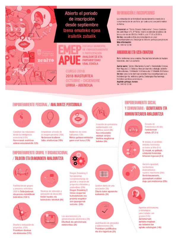 ¿Quieres fomentar, destacar, hacer visible aquello que te hace única y no sabes cómo? ¿Quieres que te ayudemos? En el curso "Empoderamiento a través de la imagen personal" que imparte Eugenia Oiz, te ayudarán a sacar partido y potenciar tu imagen. En el curso escubrirás maneras creativas para desarrollar tu marca y conseguir tus objetivos. El curso es gratuito. Se imparte los días 17, 19, 24 y 26 de octubre de 17 a 21 horas en Civivox Condestable.