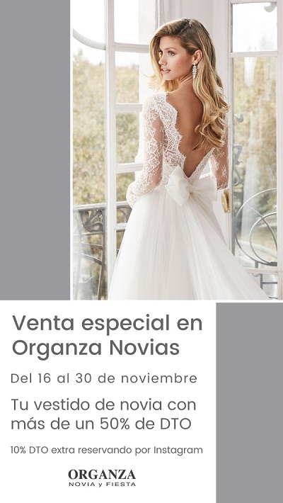 Hay descuentos a partir de 50% y si reservan a través del perfil de Instagram de Organza Novias se hará un 10% de DTO EXTRA.