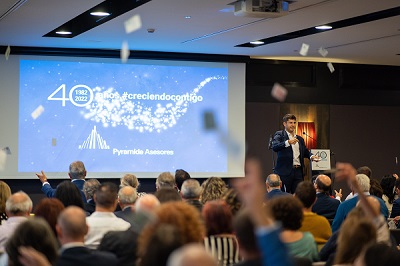 Cerca de 300 personas se congregaron el jueves 20 de octubre en el Hotel Alma Pamplona para celebrar el 40 aniversario de Pyramide Asesores. Lorena Lobete, directiva de la empresa nos envía información sobre esta celebración. La empresa, fundada por José Lobete en 1982, quería compartir con clientes, trabajadores, colaboradores, amigos, amigas e instituciones públicas una fiesta amena y emotiva con la que celebrar estas cuatro décadas de trayectoria empresarial juntos. Desde Amedna les trasladamos nuestra enhorabuena por esta larga trayectoria empresarial.