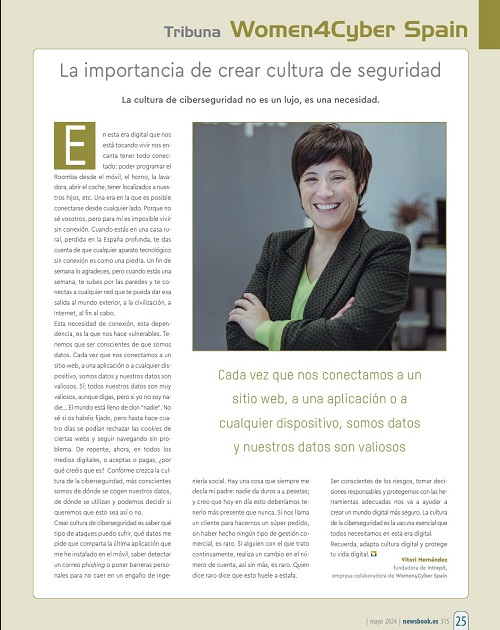 Nos hacemos eco del artículo de Vitori Hernández, directora de Intrepit, publicado en la tribuna Women4Cyber Spain de la edición de mayo de newsbook.com. En este artículo se destaca que la cultura de ciberseguridad no es un lujo sino una necesidad. En la esta era digital que nos está tocando vivir nos encanta tener todo conectado: poder programa el Roomba desde el móvil, el horno, la lavadora, abrir el coche, tener localizados nuestros a nuestros hijos etc. Una era en la que es posible conectarse desde cualquier lado.