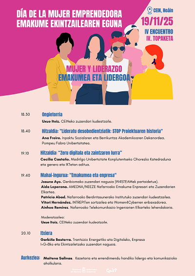 El próximo miércoles 19 de noviembre a las 18:30h en CEIN, se celebrará el IV Encuentro “Mujer y liderazgo” en el “Día de la mujer emprendedora”; este Encuentro contará con dos ponencias centradas en la historia del Proyecto Stop, para prevención del suicidio y las nuevas tecnologías y los cuidados y con una mesa redonda sobre mujer y empresa en la que intervendrá Aida Loperena, secretaria de Amedna.