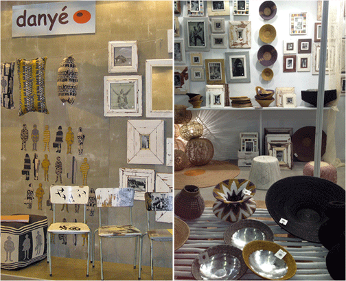 Grandes bandejas y pots daban la bienvenida a un stand en el que los colores grises y mostaza contrastaban con el negro de los grandes cestos de Gone Rural. La nueva colección de viejas sillas de escuela personalizadas con fotos antiguas ha tenido una gran acogida. Las novedades han incluido también el uso de nuevos materiales, como el aluminio, que han sido combinados con la ya tradicional hierba africana. Puffs, cojines, lámparas y los conocidos marcos de madera recuperada, completaban un stand lleno de novedades.